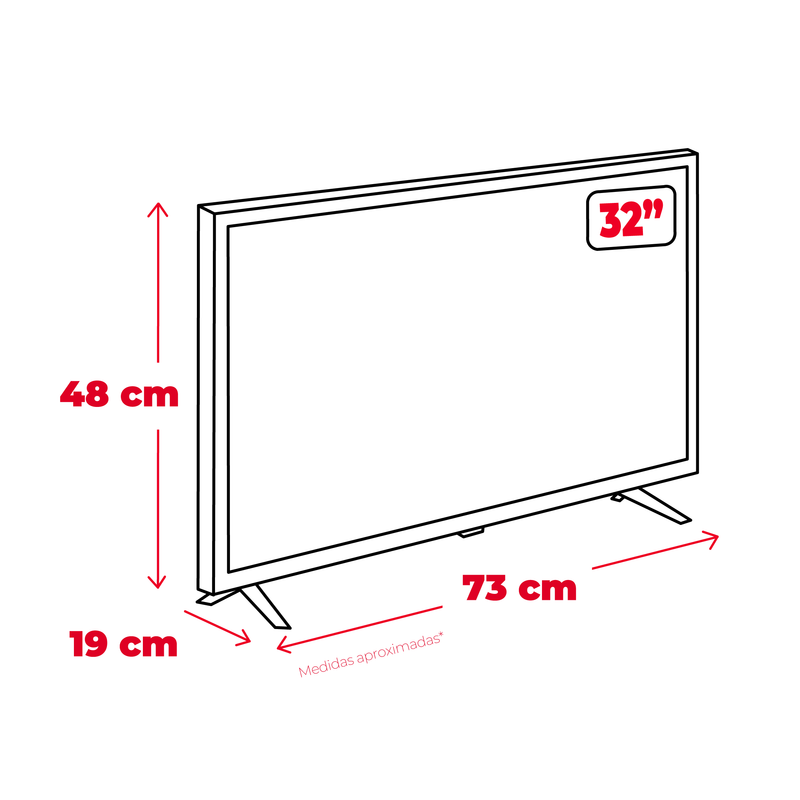 Pantalla LED de 32” con resolución HD para imágenes claras y colores vivos.